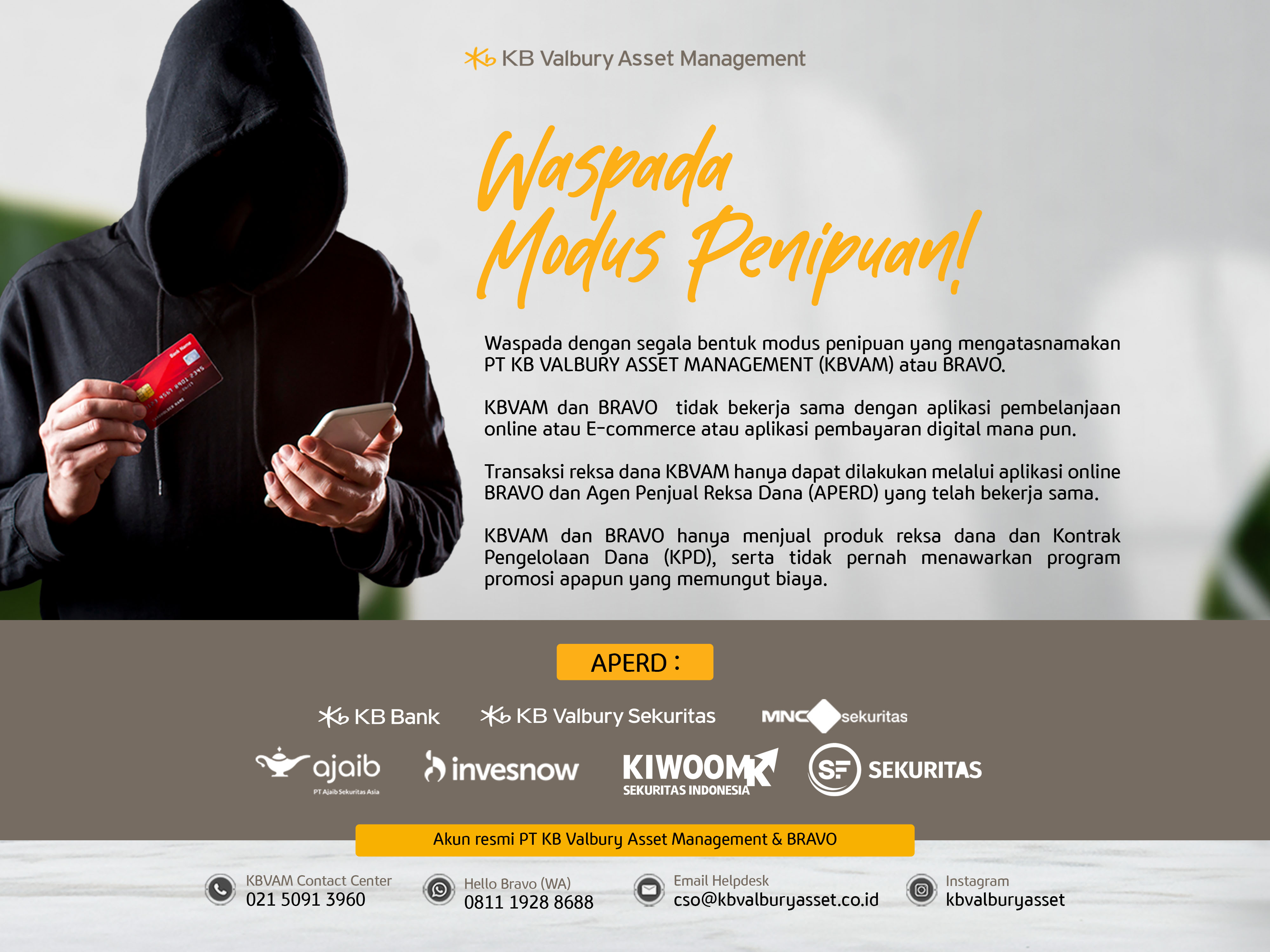 As the digital era develops, KB Valbury Asset Management is also committed to providing convenience for investors in investing in Valbury mutual funds by presenting an online platform, BRAVO (Belanja Reksa Dana Valbury Online) which can be accessed online anytime and anywhere.